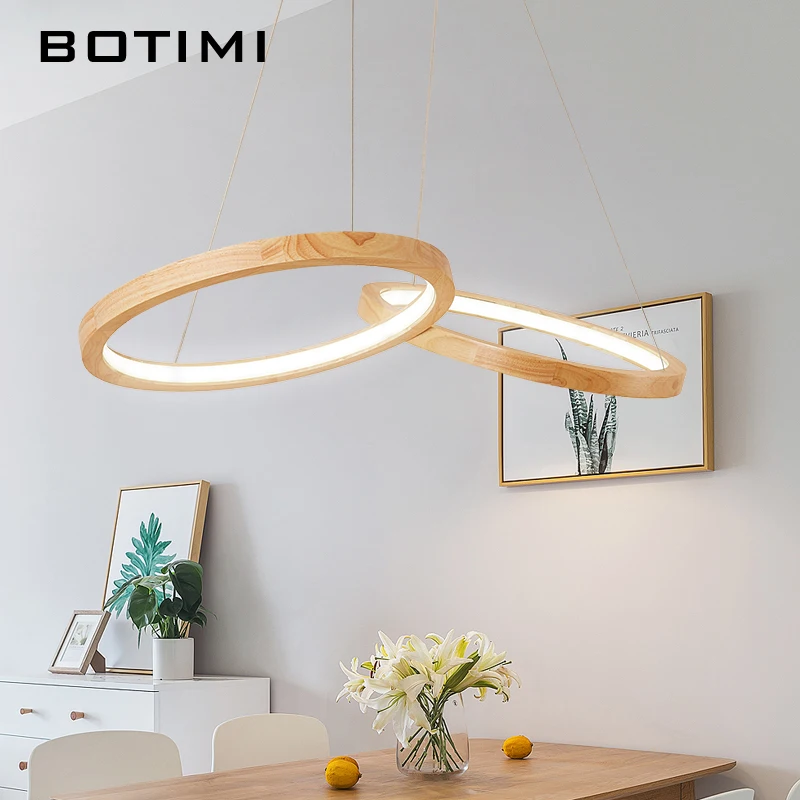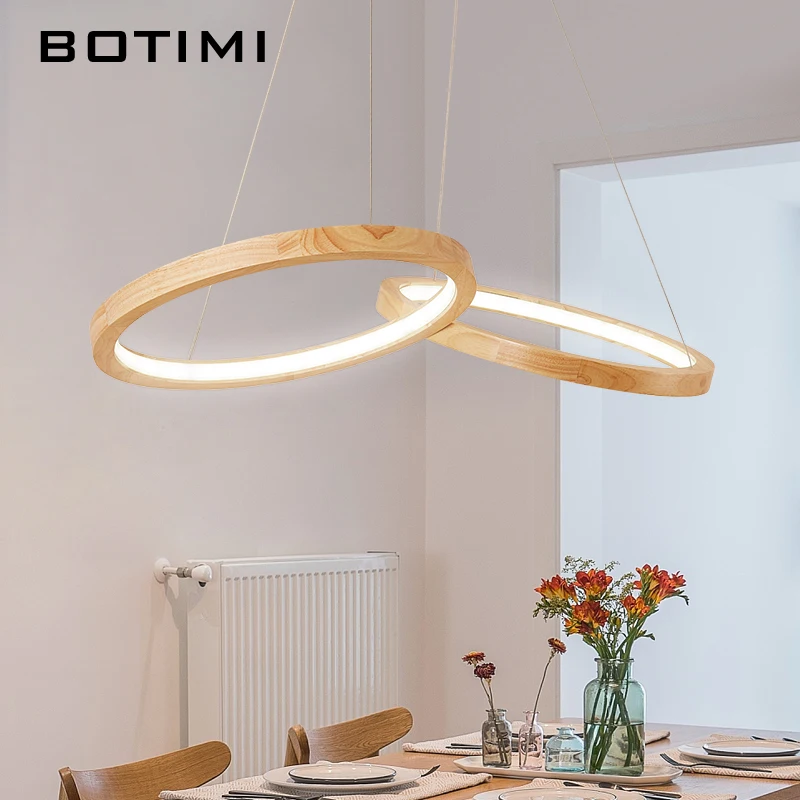 BEST QUALITY BOTIMI Wooden LED Pendant Lights For Dining Room 2 Round Wooden Rings Lustre Wood Kitchen Luminaire