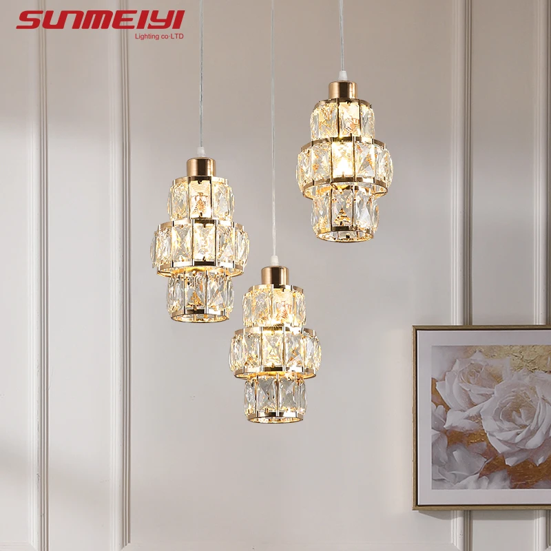 HOT Sale Nordic LED Pendant Lights Crystal Gold Hanging Lamp For Dining Table Bar Kitchen Living room lampad