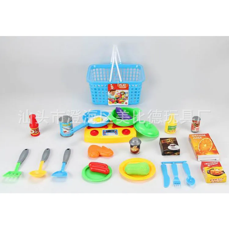 ORIGINAL Children Play House Food Toy Kitchenware Food Set Portable Basket Educational Kitchen Kitchenware T