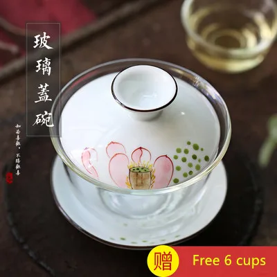 Heat-resistant Glass Tea Tureen Ceramic Hand-painted Three Bowls Kung Fu Pu'er Green Tea Oolong Tea